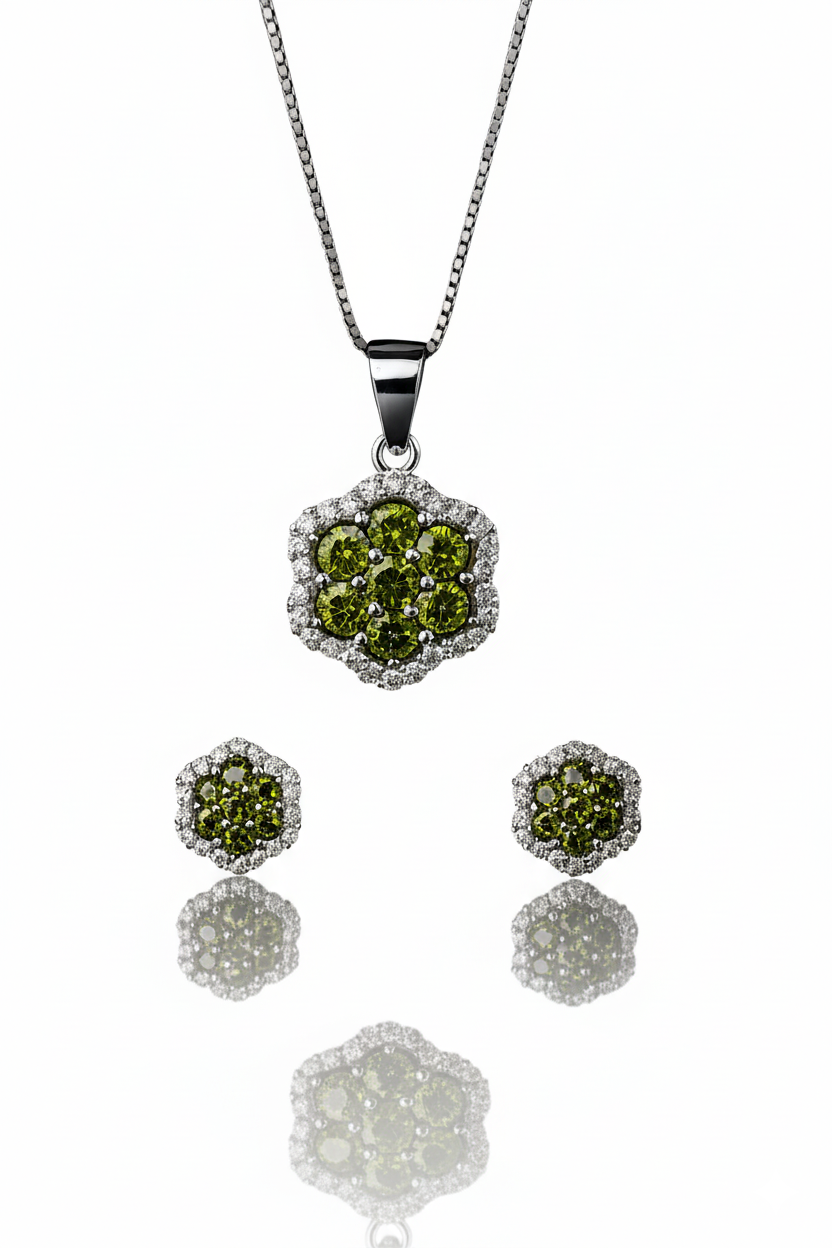 A refined necklace featuring round cut peridot stones, beautifully accented with zircon detailing. Crafted in premium 925 sterling silver, this elegant design offers timeless charm with a fresh, vibrant touch.